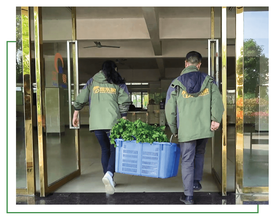 答:菜東家團隊專人專崗,從下單到配送全流程服務。