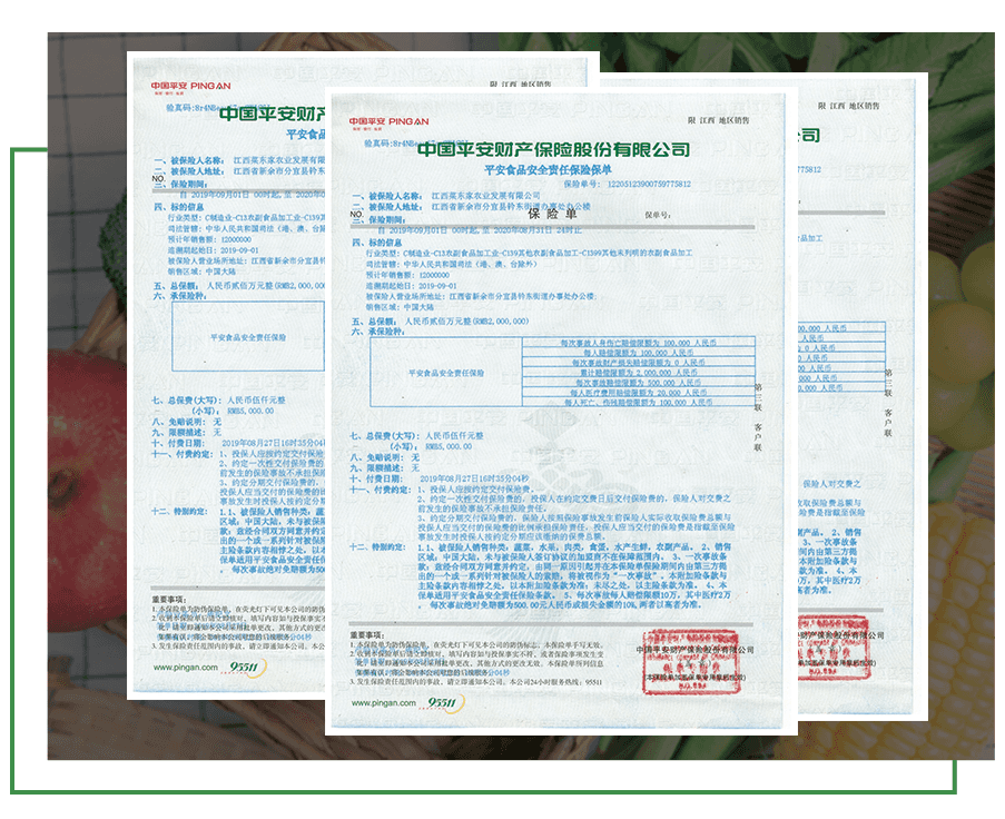 菜東家為給客戶提供更高的安全責任保駕護航,特由平安保險集團承保億元食品安全責任保險,提高抗風險和特殊意外的處置能力。