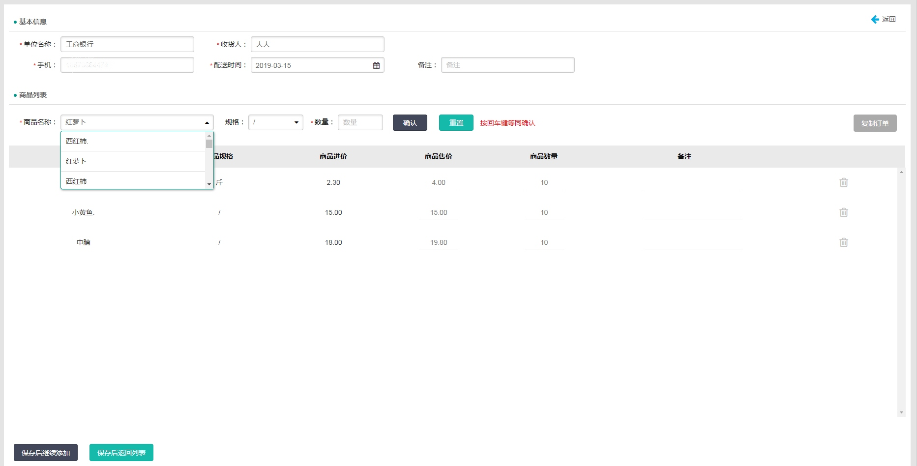 3.針對客戶的訂單生成創建,相同菜品錄入可以通過復制核查,修改數量,不需要再次重復多次錄入,提高工作效率50%以上。