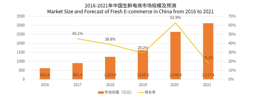 且由于受到2020年初突如其來的一場疫情的影響,線上購買水果蔬菜的規(guī)模及頻率也在穩(wěn)步上升,人們足不出戶,輕點手機即可下單,不必起早趕去菜市場或為了買菜東奔西走,這無疑給人民生活帶來了極大的便利。